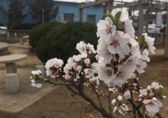 粉紅色的杏花,潔白的櫻桃花,淡雅的香氣在風(fēng)中彌漫開(kāi)來(lái),引人入勝;