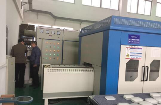 質(zhì)檢部劉經(jīng)理和該公司總經(jīng)理在粗加工車間交流玻璃加工細(xì)節(jié)