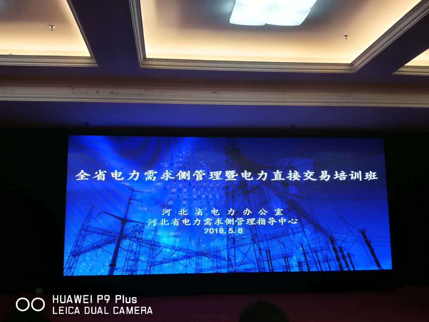 2018 年 5 月 7日-8日,秦皇島華電測(cè)控設(shè)備有限公司副總經(jīng)理兼新能源部門經(jīng)理岳曉虹及管理部經(jīng)理賀敏赴石家莊,參加了由河北省發(fā)展和改革委員會(huì)主辦的“全省電力需求側(cè)管理暨電力直接交易培訓(xùn)班”。