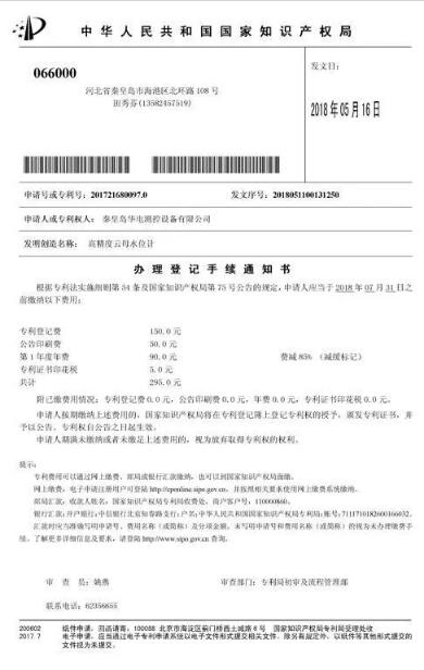 公司于2017年12月6日提交的“高精度云母水位計(jì)”(專利號(hào):201721680097.0)專利已被中華人民共和國(guó)國(guó)家知識(shí)產(chǎn)權(quán)局授予專利權(quán)。此項(xiàng)專利的授權(quán),標(biāo)志著公司已經(jīng)擁有42項(xiàng)自主知識(shí)產(chǎn)權(quán)。