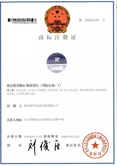 2017年1月,秦皇島華電測(cè)控設(shè)備有限公司正式將美國(guó)授權(quán)的rlevels商標(biāo)向中國(guó)國(guó)家商標(biāo)局提交申請(qǐng)注冊(cè)文件,經(jīng)商標(biāo)局嚴(yán)謹(jǐn)審核認(rèn)證,近日獲得商標(biāo)注冊(cè)證:第22544618A,第1類,有效期為2018年03月14日至2028年03月13日。該商標(biāo)的注冊(cè)成功,標(biāo)志著公司已經(jīng)擁了41項(xiàng)自主知識(shí)產(chǎn)權(quán)。 秦皇島華電測(cè)控設(shè)備有限公司以誠(chéng)信立業(yè),不斷開拓創(chuàng)新,經(jīng)過近二十年的發(fā)展,取得了多項(xiàng)榮譽(yù),曾先后被授予“河北省高新技術(shù)企業(yè)”、“河北省著名商標(biāo)”、“河北省科技型中小企業(yè)”、“河北省省級(jí)信用優(yōu)良企業(yè)”、“河北省誠(chéng)信中小企業(yè)”、“河北省中小企業(yè)技術(shù)創(chuàng)新示范企業(yè)”、“河北省對(duì)標(biāo)示范企業(yè)”、“河北省創(chuàng)新驅(qū)動(dòng)發(fā)展示范企業(yè)”、“河北省企業(yè)文化建設(shè)示范單位”等榮譽(yù)稱號(hào)。 管理部 田秀芬報(bào)道