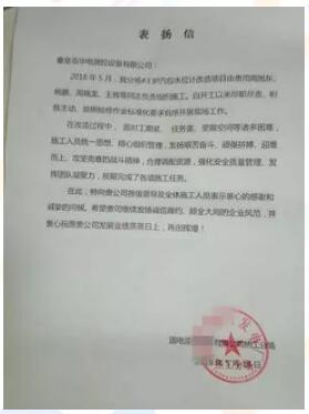 追求卓越,精益求精是每一個(gè)華電測控員工的行為準(zhǔn)則。此次改造過程中,我方施工人員獲得了電廠的來信表揚(yáng)。