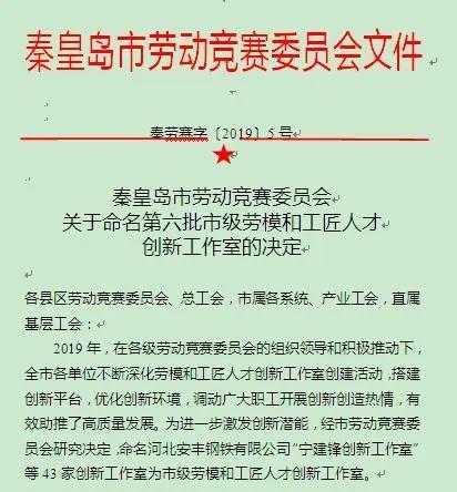 秦皇島華電測控設(shè)備有限公司“劉吉川創(chuàng)新工作室”喜獲殊榮,被秦皇島市勞動(dòng)競賽委員會(huì)評為秦皇島市第六批勞模和工匠人才創(chuàng)新工作室。