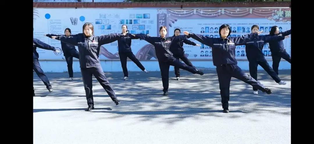 原來,是我們的美女員工們正在操練。看,身著筆挺工裝的她們還在為職工廣播體操展演做最后的準(zhǔn)備。