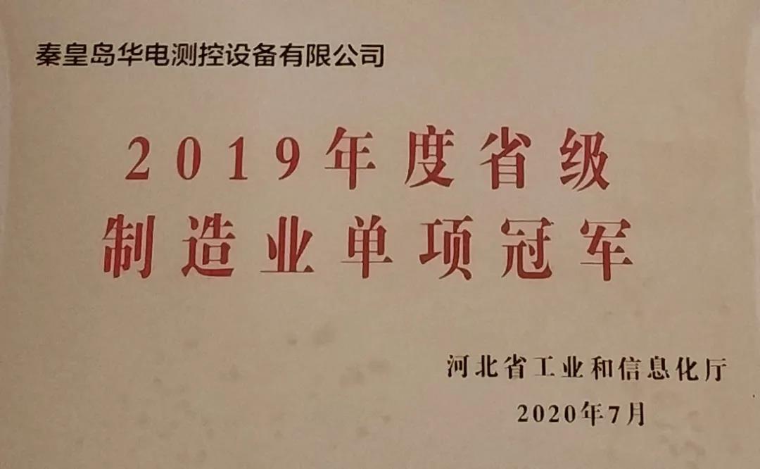近日,秦皇島華電測(cè)控設(shè)備有限公司獲得了由河北省工業(yè)和信息化廳評(píng)選的“制造業(yè)單項(xiàng)冠軍”并頒發(fā)了榮譽(yù)證書(shū)。