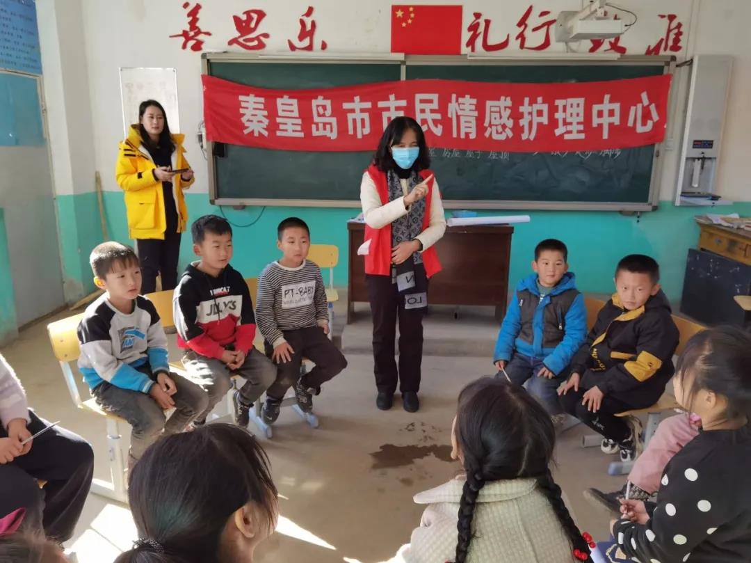 2020年11月27日秦皇島市市民情感護(hù)理中心的心理老師和志愿者一行12人,驅(qū)車一小時(shí)來(lái)到位于秦皇島市海港區(qū)最偏遠(yuǎn)的山區(qū)小學(xué)九門(mén)口和東賀莊小學(xué),為山里的孩子們送去滋養(yǎng)心靈的心理健康活動(dòng)課。