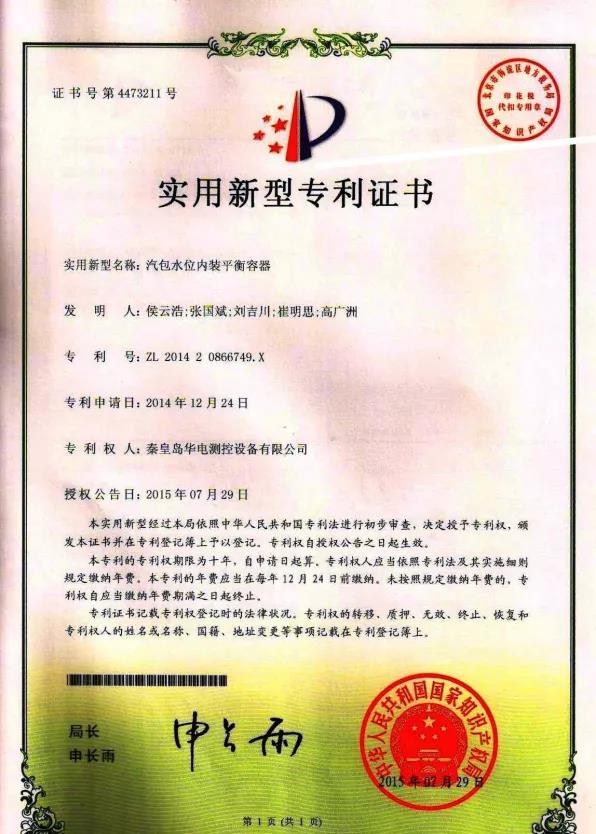 我公司中標(biāo)的6套內(nèi)裝平衡容器,型號(hào)HDSC-DNZ-2O,是我集團(tuán)公司下屬秦皇島華電測(cè)控設(shè)備有限公司自主研發(fā)生產(chǎn)的專利產(chǎn)品(專利號(hào):ZL201420866749.X),該產(chǎn)品自投入市場(chǎng)后,使用效果良好,水位測(cè)量精準(zhǔn),深受廣大用戶好評(píng)。
