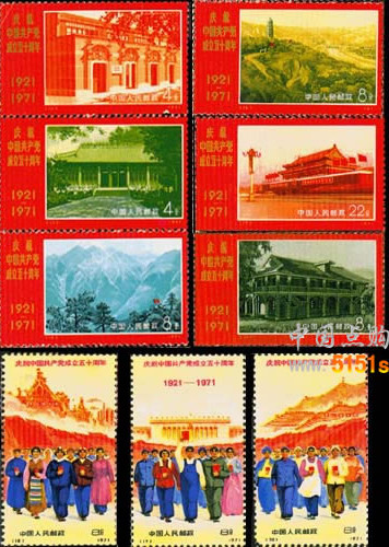 在1967年,我國郵電部發(fā)行了一套郵票,紀(jì)念毛主席創(chuàng)建井岡山革命根據(jù)地40周年。1967年6月,郵票設(shè)計人員開始郵票設(shè)計。8月上旬郵票圖稿設(shè)計完并報送中央有關(guān)部門審定之后,郵票圖稿經(jīng)郵票廠制版并打出樣票。“創(chuàng)建井岡山革命根據(jù)地40周年”郵票編號為“文5”,郵票名稱為“紀(jì)念毛主席創(chuàng)建井岡山革命根據(jù)地四十周年”,發(fā)行日期為1967年10月1日,全套4枚,面值均為8分,影寫版。第一枚郵票圖案為毛主席和林彪在天安門城樓上。第二枚郵票圖案為毛澤東及其一行在井岡山會師。第三枚是毛主席語錄:“槍桿子里面出政權(quán)”。第四枚是毛主席詩詞:西江月?井岡山(一九二八年秋):“山下旌旗在望,山頭鼓角相聞。敵軍圍困萬千重,我自巋然不動。”當(dāng)打出樣票準(zhǔn)備付印時,郵票廠接到上級有關(guān)部門的通知:“紀(jì)念毛主席創(chuàng)建井岡山革命根據(jù)地40周年”郵票,取消發(fā)行,郵票印樣全部銷毀,于是,這套紀(jì)念郵票被銷毀,在銷毀過程中流失了一部份,但數(shù)量極少,十分珍貴。據(jù)有關(guān)雜志報道,1981年美國一家郵商在日本東京舉行郵票拍賣時,曾在目錄上刊出過這套郵票中的第一枚。1997年11月21日北京郵星貿(mào)易總公司在上海舉行的拍賣會,1枚紀(jì)念毛主席創(chuàng)建井岡山革命根據(jù)地40周年郵票,上品,底價150萬元(人民幣),未拍出。