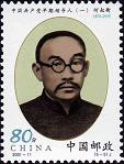 郵票是國家的名片。紀(jì)念郵票開設(shè)“中國共產(chǎn)黨早期領(lǐng)導(dǎo)人”系列,始自2001年,當(dāng)時(shí)是作為建黨80周年紀(jì)念活動(dòng)的一項(xiàng)重要宣傳內(nèi)容。發(fā)行這個(gè)系列郵票的目的,不僅是重溫歷史,總結(jié)經(jīng)驗(yàn);也是弘揚(yáng)光榮傳統(tǒng),教育激勵(lì)后人。根據(jù)已知的資料,郵票上的這些歷史人物,都是選取的上世紀(jì)二十年代革命戰(zhàn)爭(zhēng)時(shí)期的“早期”形象,目光炯炯,英姿颯爽,有著獨(dú)具的個(gè)性氣質(zhì)和鮮明的時(shí)代特征。他們的英雄故事被廣為傳頌,他們的業(yè)績(jī)、他們的思想、他們的奮斗精神,值得后輩們很好地學(xué)習(xí)和發(fā)揚(yáng)。他們的不凡經(jīng)歷綜合起來,實(shí)際上就是一部鮮活的黨的早期革命斗爭(zhēng)史。發(fā)行紀(jì)念郵票,的確是非常有效的紀(jì)念方式之一。因此,國家郵政局于2001年6月28日發(fā)行《中國共產(chǎn)黨早期領(lǐng)導(dǎo)人(一)》郵票一套5枚。中國共產(chǎn)黨早期組織的創(chuàng)建者和早期領(lǐng)導(dǎo)人王燼美、趙世炎、鄧恩銘、蔡和森、何叔衡,就是這些千千萬萬個(gè)共產(chǎn)黨員中的杰出代表。這套郵票由王虎鳴設(shè)計(jì),每枚面值80分。上一期我們通過郵票學(xué)習(xí)了一大代表王盡美的事跡,本期重點(diǎn)介紹黨史中的一大代表,為革命事業(yè)犧牲的先烈鄧恩銘、何叔衡。