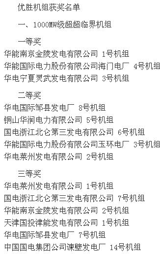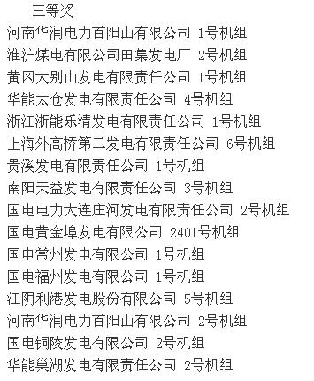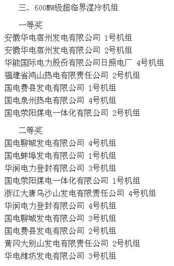 2015全國火電600MW級機組年度競賽結(jié)果