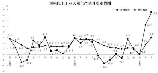 1-4月份,天然氣產(chǎn)量509.4億立方米,同比增長6.0%。進(jìn)口2011萬噸[4],增長5.4%。