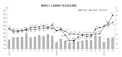 據(jù)國家統(tǒng)計(jì)局消息,統(tǒng)計(jì)局今日發(fā)布2017年4月份能源生產(chǎn)情況,數(shù)據(jù)顯示,規(guī)模以上工業(yè)原煤生產(chǎn)增速加快,價(jià)格有所回落;原油生產(chǎn)降幅收窄,原油加工量增速回落;天然氣生產(chǎn)快速增長;發(fā)電量增速放緩。