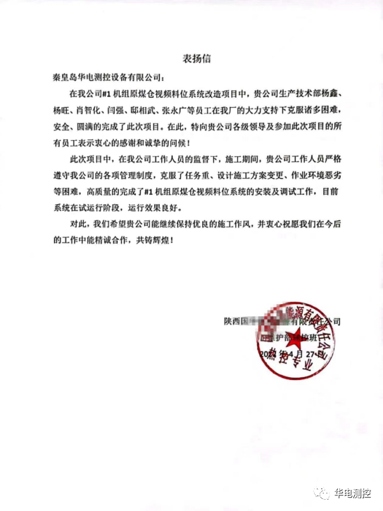 項目改造效果得到廠領(lǐng)導及工作人員認可,現(xiàn)場工程技術(shù)人員更是得到電廠上下的一致好評。項目結(jié)束后電廠立刻發(fā)來《表揚信》,信中電廠對生技部楊鑫、楊旺、肖智化、閆強、邸相武、張勇廣等員工的專業(yè)技術(shù)和工作態(tài)度給予肯定,并向我公司及工作人員標識感謝,最后“祝愿我們在今后的工作中能精誠合作,共鑄輝煌!”公司一直致力于解決火力發(fā)電廠煤倉“堵煤”、“棚煤”、“漏眼”、“板結(jié)”、煤倉狀態(tài)實時監(jiān)測、煤倉安全管理等問題。自主研發(fā)、生產(chǎn)的HDSC煤倉綜合管理系統(tǒng)系列產(chǎn)品在國際上處于領(lǐng)先水平,占據(jù)國內(nèi)主要市場,并遠銷海外,用戶超過800家,受到廣泛贊譽。公司生產(chǎn)的煤倉自動疏松裝置先后榮獲河北省中小企業(yè)質(zhì)量信得過產(chǎn)品、名牌產(chǎn)品稱號,煤倉綜合控制系統(tǒng)被認定為河北省軟件產(chǎn)品。