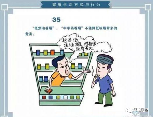 提高人們的健康素養(yǎng),一方面要認(rèn)識(shí)吸煙及二手煙的危害相當(dāng)重要,同時(shí)還提示人們認(rèn)真研讀《中國(guó)公民健康素養(yǎng)—基本知識(shí)與技能》第二部分,關(guān)于“健康生活方式與行為”,包括第三十五條:“低焦油卷煙”、“中草藥卷煙”不能降低吸煙帶來(lái)的危害。