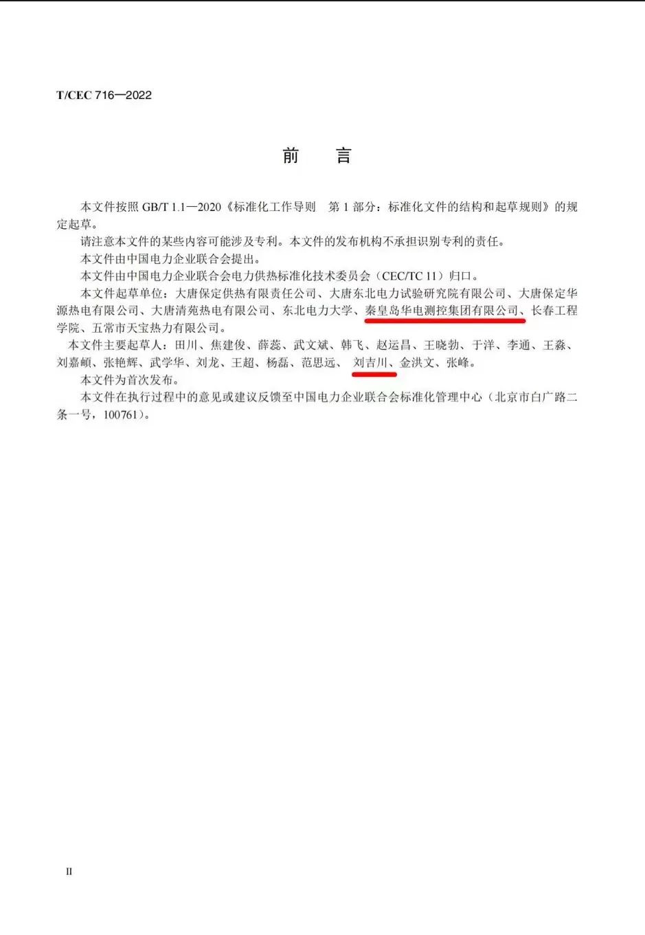 秦皇島華電測(cè)控集團(tuán)有限公司參與編制的團(tuán)體標(biāo)準(zhǔn)——《火力發(fā)電廠智能熱網(wǎng)供熱服務(wù)規(guī)范》(T/CEC 716—2022)于2022年10月26日由中國電力企業(yè)聯(lián)合會(huì)發(fā)布,2023年2月1日實(shí)施。該標(biāo)準(zhǔn)文件由中國電力出版社出版、印刷、發(fā)行,規(guī)定了火力發(fā)電廠智能熱網(wǎng)供熱服務(wù)的質(zhì)量與要求、運(yùn)行與維護(hù)、服務(wù)與管理、服務(wù)質(zhì)量評(píng)價(jià)等。