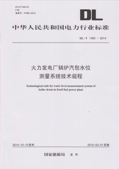 近日,公司參與編制的《火力發(fā)電廠鍋爐汽包水位測(cè)量技術(shù)規(guī)程》電力行業(yè)標(biāo)準(zhǔn)(標(biāo)準(zhǔn)編號(hào)DL/T 1393-2014)正式出版發(fā)行。此行業(yè)標(biāo)準(zhǔn)由國(guó)家能源局于2014年第11號(hào)公告發(fā)布。該標(biāo)準(zhǔn)規(guī)定了火力發(fā)電廠鍋爐汽包水位測(cè)量技術(shù)的基本要求及內(nèi)容,條文清晰、系統(tǒng)性強(qiáng)、數(shù)據(jù)詳實(shí),為規(guī)范火力發(fā)電廠鍋爐汽包水位測(cè)量技術(shù)提供了依據(jù),有助于提高火力發(fā)電廠生產(chǎn)的安全性。