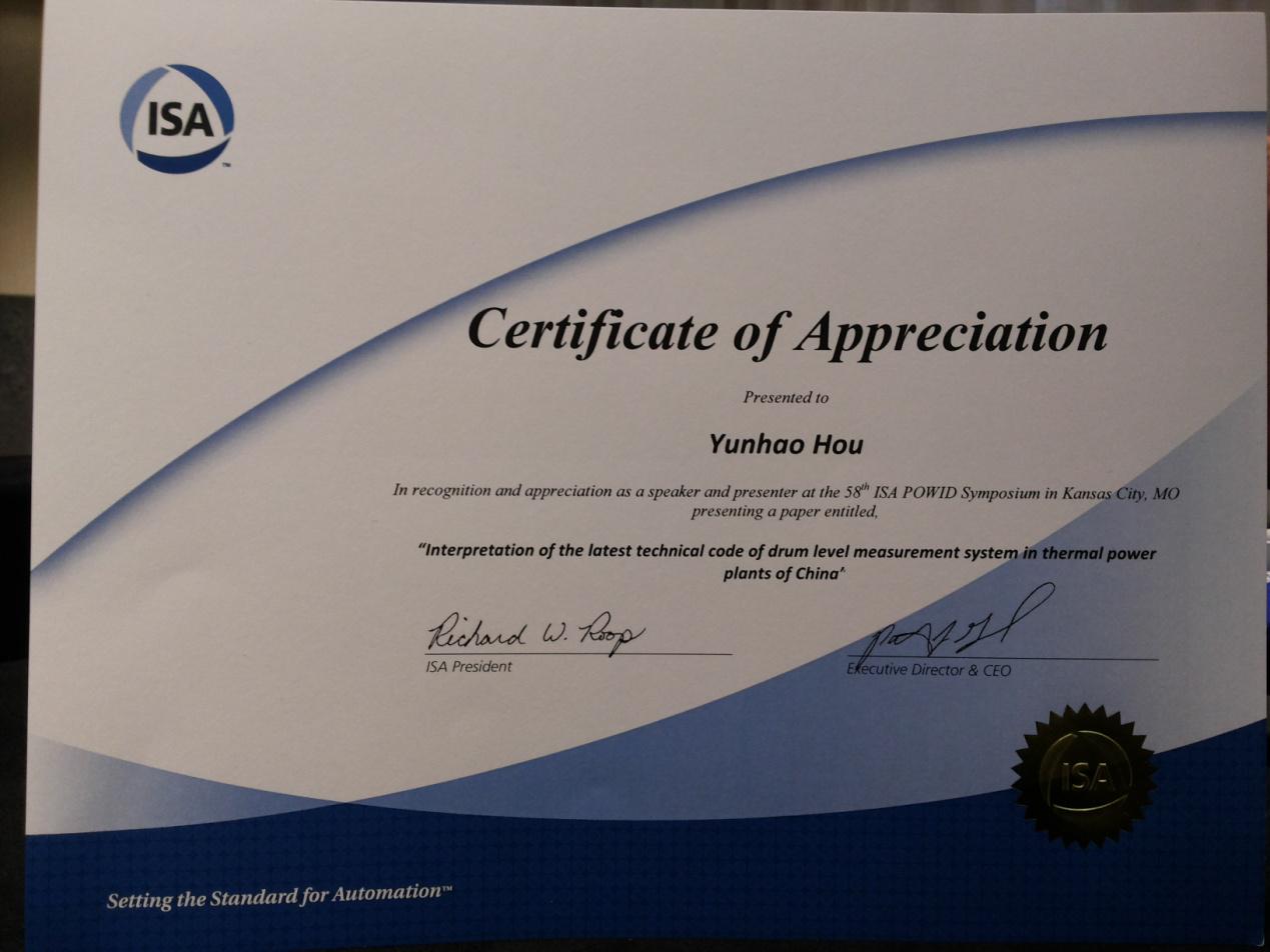 這次是我公司第三次受邀參會,國貿(mào)部副經(jīng)理、高級工程師于勝利和副總工程師崔明思代表公司參會。新的汽包水位測量技術(shù)行業(yè)標(biāo)準(zhǔn)得到了與會專家的高度重視和認可,公司在汽包水位測量技術(shù)領(lǐng)域取得的成就得到了美國標(biāo)準(zhǔn)管理局ISA和電力行業(yè)專家的肯定和贊譽。華電測控對世界電力行業(yè)做出了突出的貢獻,在標(biāo)準(zhǔn)層面引領(lǐng)世界電力行業(yè)向更安全,更可靠發(fā)展。