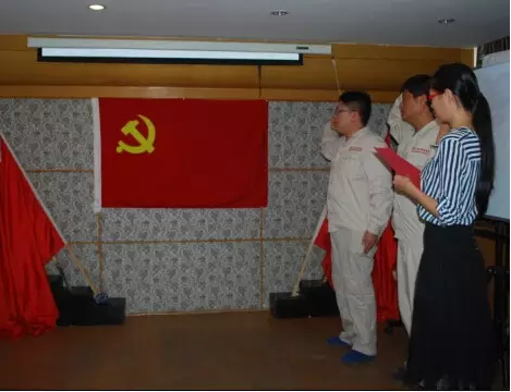 2015年7月31日,是一個神圣的日子,它見證了劉磊、尹新磊兩名同志光榮地加入了中國共產(chǎn)黨。在公司二樓會議室,面對著鮮紅的黨旗,兩名新黨員進行了莊嚴的入黨宣誓儀式。公司黨支部成員以及入黨積極分子共10余人參與了本次活動。
