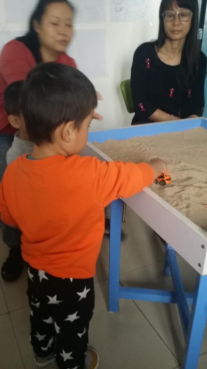 似懂非懂的我?guī)е鞣N的擔(dān)心,擔(dān)心孩子小還不到3歲,比較淘氣,會(huì)不會(huì)可哪亂跑?會(huì)不會(huì)把玩具弄壞?會(huì)不會(huì)弄得沙子哪都是?會(huì)不會(huì)耍賴?帶著各種擔(dān)心和不確定來到了情感護(hù)理中心,劉伶華老師和肖艷玲老師接待了我們,給我們說了一下活動(dòng)的方向和注意事項(xiàng),活動(dòng)就開始了。老師們認(rèn)真的觀察和記錄,也讓我們這樣靜靜的觀察我的兒子,我兒子沒有因?yàn)榄h(huán)境的變化而不自在,剛說明活動(dòng)內(nèi)容時(shí),感覺兒子完全沒有在聽,可是他在活動(dòng)時(shí),凡事都試探著慢慢的在做,沒有亂跑,沒有亂弄玩具,沒有把沙子弄得哪都是,完全出乎我的意料,雖然沒有做出完整的沙盤,可是老師通過細(xì)致的觀察,從孩子的行動(dòng)中,已經(jīng)看到了孩子的內(nèi)心。給我們分析了孩子的狀況,孩子哪方面發(fā)展的比較好,哪方面還有待提高,還給我們舉出很多案例供我們參考,“沙盤游戲”是個(gè)時(shí)時(shí)刻刻長期有效觀察孩子的活動(dòng),不同的時(shí)期會(huì)反映不同的效果,更真切的了解孩子的成長。