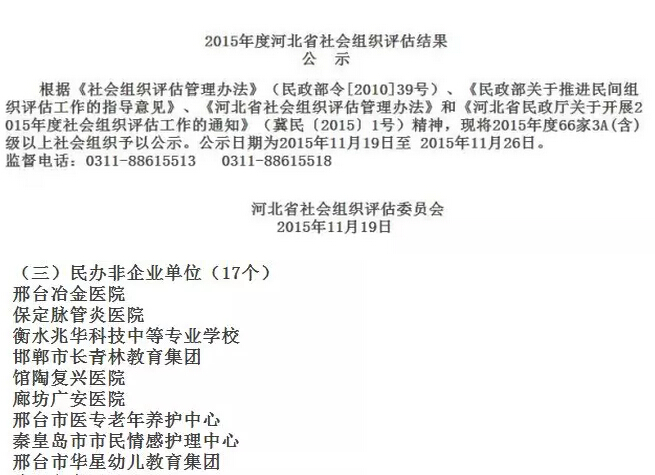【企業(yè)要聞】秦皇島市市民情感護(hù)理中心榮獲2015年度河北省社會(huì)組織評估3A級單位