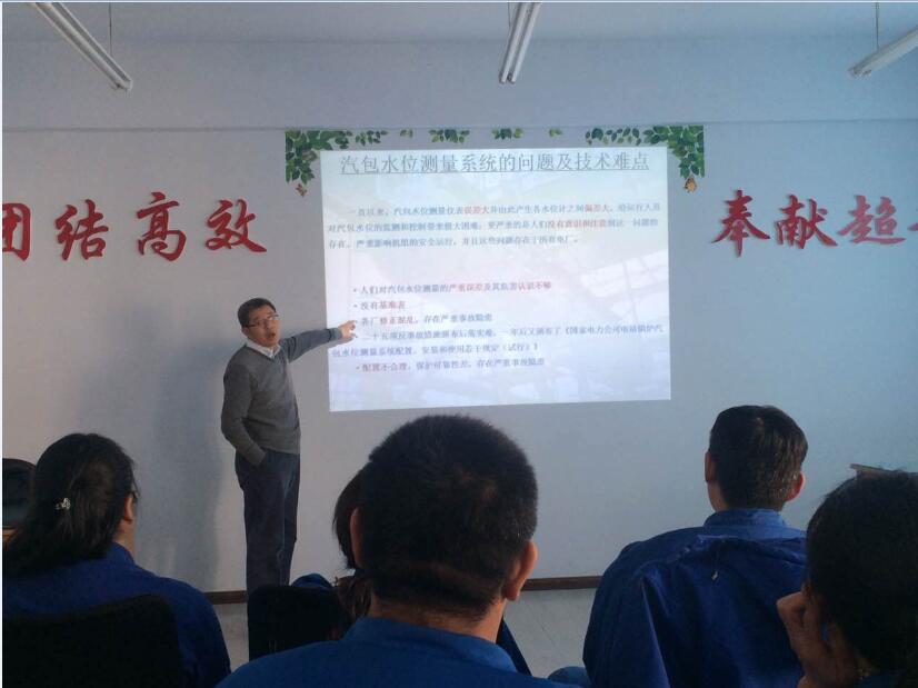 2016年1月5日上午,秦皇島華電測(cè)控設(shè)備有限公司總經(jīng)理劉吉川先生親赴華電能源佳木斯熱電廠,為“熱工分廠”技術(shù)人員組織了一場(chǎng)關(guān)于“鍋爐汽包水位計(jì)測(cè)量”的授課。授課內(nèi)容涵蓋了“汽包水位測(cè)量系統(tǒng)改造必要性、汽包水位測(cè)量系統(tǒng)的問(wèn)題及技術(shù)難點(diǎn)、如何解決、改造效果”等四個(gè)方面。作為汽包水位測(cè)量行業(yè)的專(zhuān)家,劉總的授課受到了熱工人員的一致認(rèn)可。