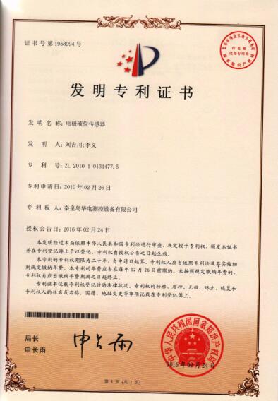 公司于2010年2月26日提交的“電極液位傳感器”發(fā)明專利申請(qǐng),歷時(shí)六年,終被中華人民共和國(guó)國(guó)家知識(shí)產(chǎn)權(quán)局頒發(fā)發(fā)明專利證書(shū)。