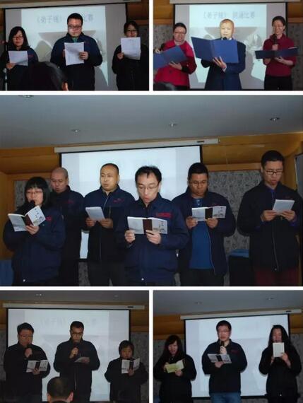 此次朗誦比賽高潮迭起、異彩紛呈,各個部門在選材、朗誦形式、服裝隊形等方面別出心裁、力求不凡:國貿(mào)部學貫中西,用中英雙語朗誦了《弟子規(guī)》,讓人眼前一亮;工程部借著快板演出,鏗鏘有力地朗誦,將比賽推向高潮;管理部更是將《弟子規(guī)》帶入了家庭,開場就是子女的誦讀錄音,伴著統(tǒng)一的傳統(tǒng)服飾,一出場就讓古韻流淌、文化傳承……每個部門都用自己的方式詮釋了《弟子規(guī)》的內(nèi)涵,每個節(jié)目都發(fā)人深思。這些精彩的節(jié)目源自于大家對《弟子規(guī)》精神的深入理解和持續(xù)踐行。最終,工程部脫穎而出,獲得了本次比賽的一等獎,管理部和生產(chǎn)部也分獲二、三等獎。