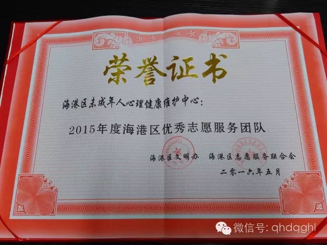 2016年5月26日上午,海港區(qū)區(qū)委區(qū)政府組織召開了海港區(qū)志愿服務(wù)工作推進(jìn)會。會上對2015年度海港區(qū)優(yōu)秀志愿者及志愿者團(tuán)隊進(jìn)行了表彰,海港區(qū)未成年人心理健康維護(hù)中心暨秦皇島市市民情感護(hù)理中心喜獲2015年度海港區(qū)優(yōu)秀志愿者團(tuán)隊獎。