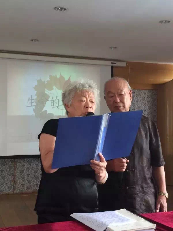 楊姨盡管已是80高齡,但精神矍鑠,聲音洪亮,腰板挺直,乍看像60來歲的人。她與高齡83歲的愛侶攜手前來,盈盈淺笑,光彩照人,見之忘憂。她和老伴朗誦了他們共同寫就的詩,《寫給老伴的悄悄話》,聲情并茂,場面感人。然后,楊女士用中、英雙語作了自我介紹,語言流利,悅耳動(dòng)聽。