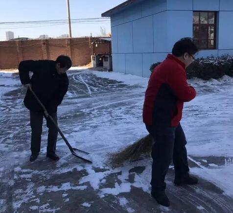 公司大院里陽光照射不到的地方,積雪還有很多,員工進(jìn)進(jìn)出出很不安全,1月9日上午管理部組織人員進(jìn)行清雪,大家默契配合,很快就將路面清理干凈了,背陰的地方,天氣很冷,但是掃雪的熱情早已沖破嚴(yán)寒。質(zhì)檢安全部經(jīng)理劉慶明,不顧腰痛,也加入了我們,還有劉磊,因?yàn)樗麄兊纳眢w不好,被大家攔下了。