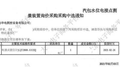 2021年2月3日,我公司在大唐集團(tuán)安徽某電廠的電接點液位計改造項目的競標(biāo)中,憑借強(qiáng)大的綜合實力以及過硬的產(chǎn)品質(zhì)量,通過層層篩選、激烈角逐,以絕對的優(yōu)勢順利中標(biāo)。 該項目采用公開招標(biāo)方式,我公司自收到招標(biāo)信More
