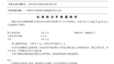 公司于2017年2月14日提交的“一種槽式太陽(yáng)能聚光器鏡面的設(shè)計(jì)方法”(專利號(hào):201710078246.4)專利已被中華人民共和國(guó)國(guó)家知識(shí)產(chǎn)權(quán)局授予發(fā)明專利權(quán)。此項(xiàng)專利的授權(quán),標(biāo)志著公司已經(jīng)擁有43項(xiàng)自主知識(shí)產(chǎn)權(quán)。 本More